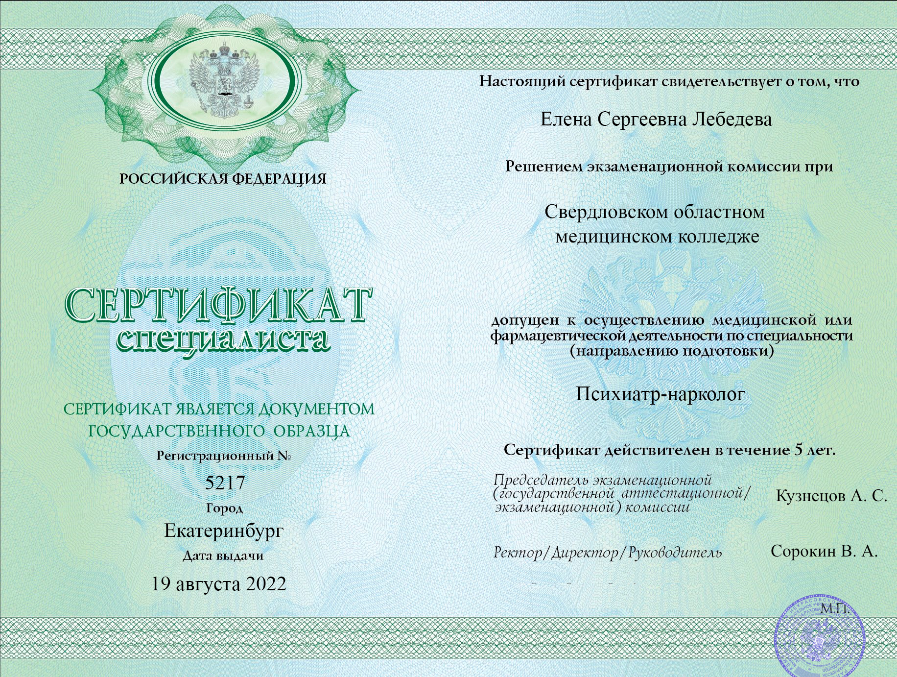 Елена Сергеевна Лебедева врач нарколог клиники доктора Стукаловой в Раздольном